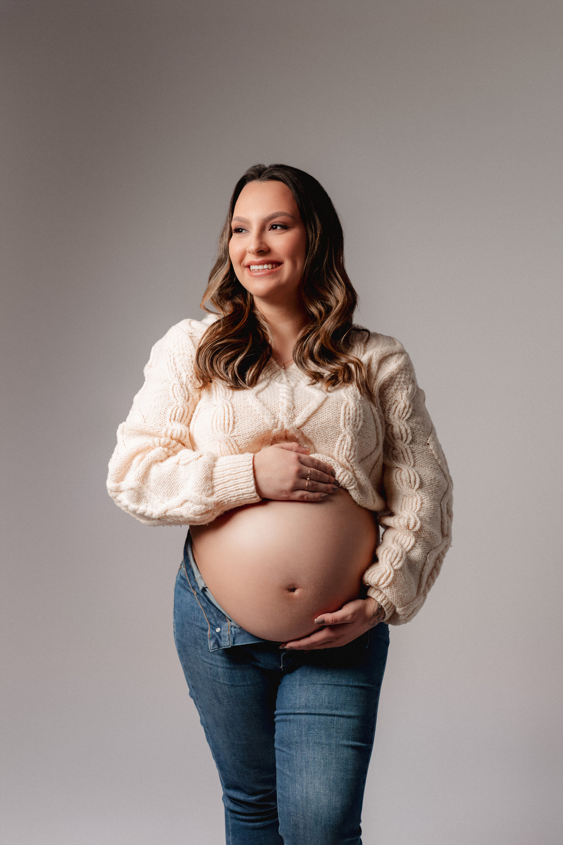 • Temos à disposição looks para as fotos realizadas em estúdio, como bodys, croppeds, vestidos, blazer, robe, camisa, tricô, conjuntos, mas a gestante pode trazer outras peçasc ex: lingerie, jeans, blusas etc.